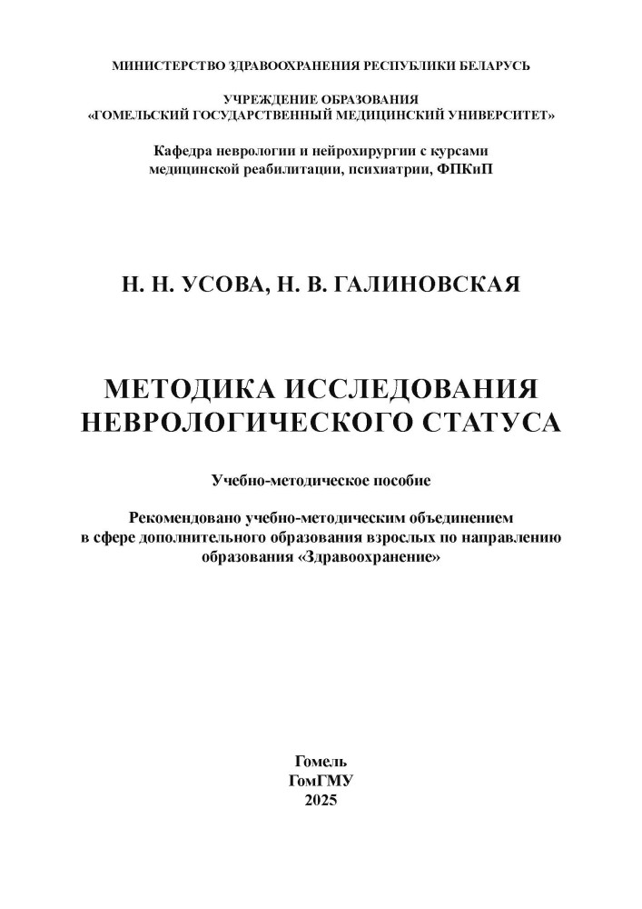 Учебно-методическое пособие предназначено для слушателей факультета повышения квалификации и переподготовки, врачей-интернов и клинических ординаторов УО «Гомельский государственный медицинский университет» при изучении дисциплины «Неврология и нейрохирургия», включает классические и современные данные оценки неврологического статуса пациента с различными формами заболеваний нервной системы, травмами головного и спинного мозга. Представлена последовательность обследования пациента неврологического и нейрохирургического профиля. Пособие может быть использовано студентами в качестве дополнительной литературы.
