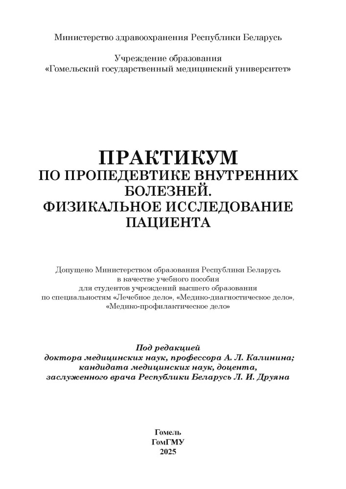 Практикум по пропедевтике внутренних болезней. Физикальное исследование пациента